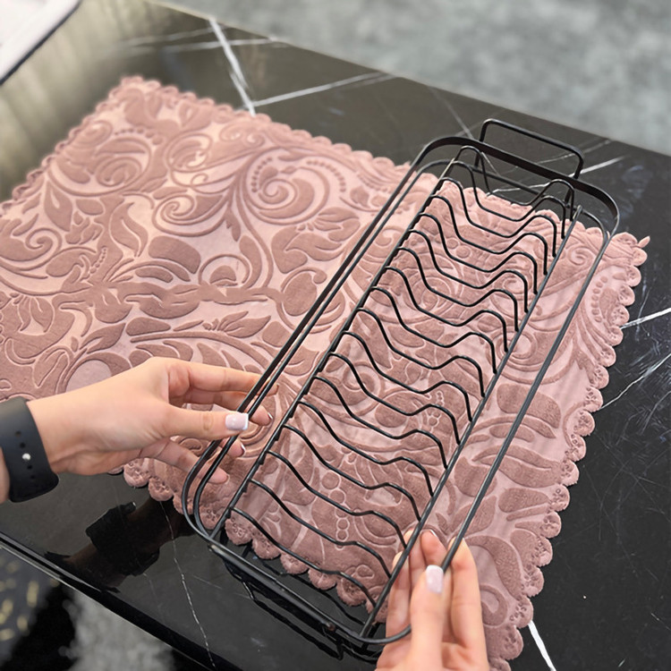 استند ظرف و نمگیر کابینتی یک محصول کاربردی برای اشپزخانه هایی است با کمبود فضا در آبچکان منزل خود رو به رو هستند. این مشکل معمولا بعد از شستن ظروف در روزهایی که میزبان مهمان های زیادی هستید به چشم میخورد. نمگیر استند دار علاوه بر نمگیر شامل یک استند یا جا ظرفی کوچک نیز می باشد که می توانید از آن برای قرار دادن ظروف کمک بگیرید. این استند از جنس فلز بوده و برای سطح آن نیز از روکش مشکی رنگ استفاده شده که علاوه بر زیبایی بخشیدن به آن ، مقاومت استند را نسبت به آب و رطوبت بیشتر می کند و مانع زنگ زدگی جا ظرفی می شود. همچنین با توجه به این مشخصه می توانید هر زمان که تمایل داشتید استند را به کمک آب و مواد شوینده تمیز کنید و هر نوع آلودگی یا لک را از سطح آن بزدایید و مجددا استفاده کنید. این استند به گونه ای طراحی شده که بتوان انواع بشقاب ، پیش دستی و خورشت خوری را روی آن جای داد. همچنین از آنجایی که این محصول طراحی مستطیل شکل دارد ، در دو طرف آن دسته ای تعبیه شده که از این طریق می توان راحت تر استند را جابجا کرد. ویژگی دیگری که در مورد این جا ظرفی باید به آن اشاره کنیم پایه کوتاهی است که برای آن در نظر گرفته شده تا ظروف با سطح زیرین تماس داشته باشند.