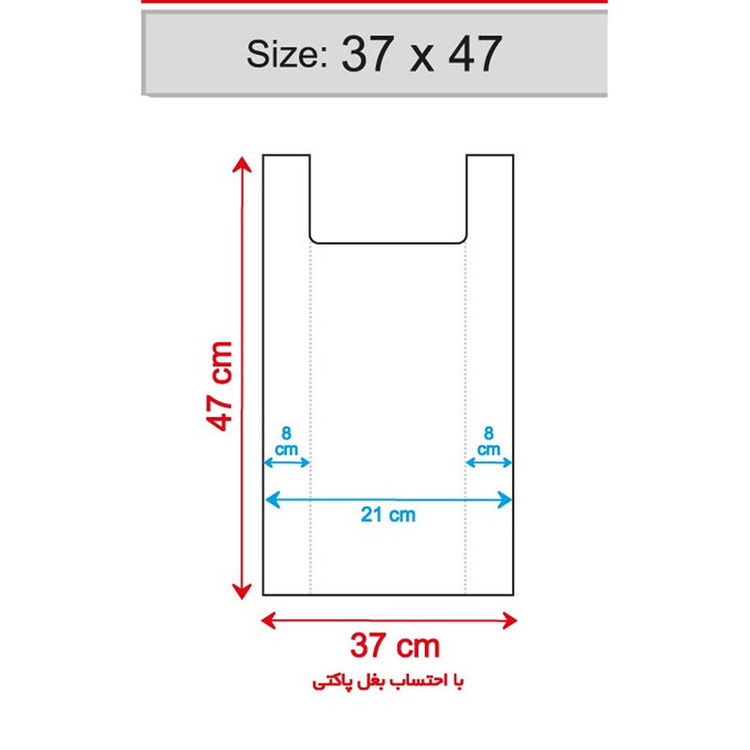 کیسه نایلون دسته دار سایز کوچک ابعاد این نایلون رکابی در حالت باز شده 47در37 سانتیمتر می باشد وزن این بسته 400 گرم