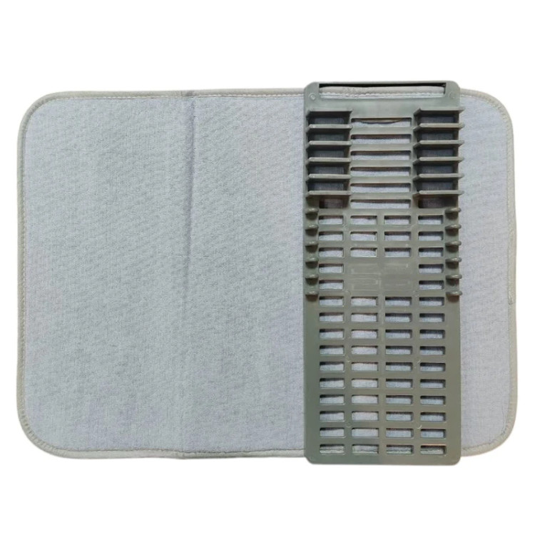 با ابعاد دقیق ۴۰ در ۵۵ سانتیمتر (و اندازه نهایی پس از نوار دوزی ۴۱ در ۵۶ سانتیمتر)، این نمگیر فضای کافی برای قرار دادن ظروف شسته شده را فراهم میآورد، بدون آنکه فضای زیادی را اشغال کند.
