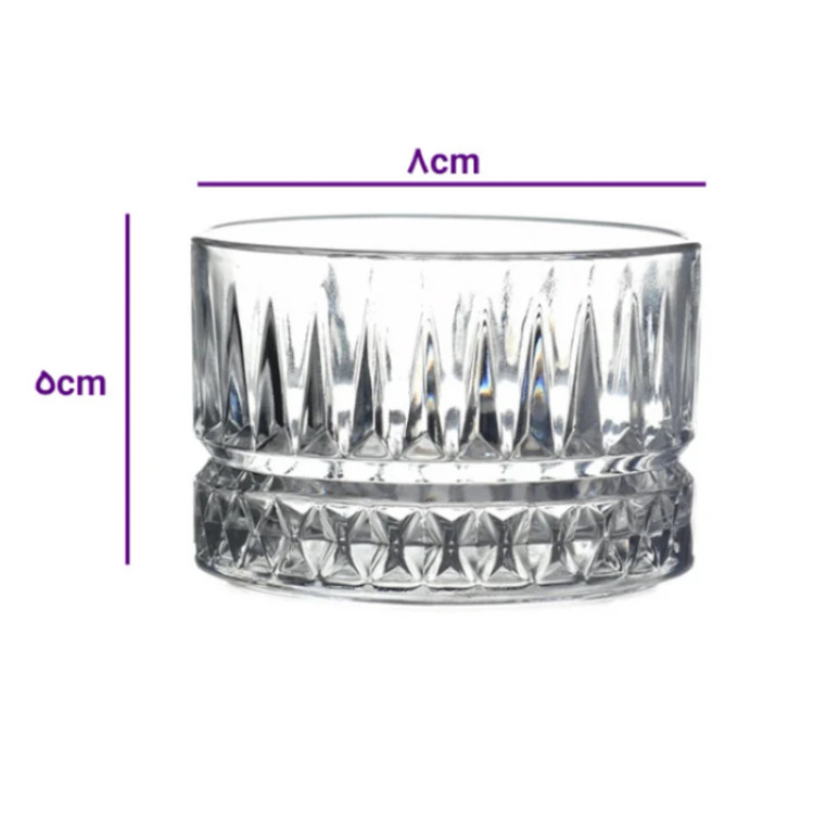 جنس این پیالهها از بلور شفاف و ضخیم است که هم جلوهای براق و لوکس روی میز ایجاد میکند و هم در برابر ضربههای روزمره مقاومت بالایی دارد. طراحی خاص بدنه با شیارهای عمودی و پایه تراشدار جلوهای مدرن و درخشان به هر محیط پذیرایی میبخشد.